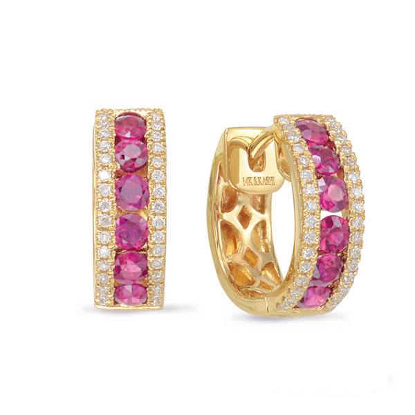 1.13 ctw. YELLOW GOLD RUBY & DIAMOND EARRING