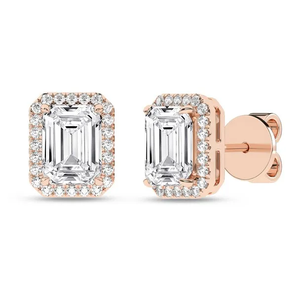Halo Stud Earrings (Emerald)/1.5Ct, 3.25Ctw