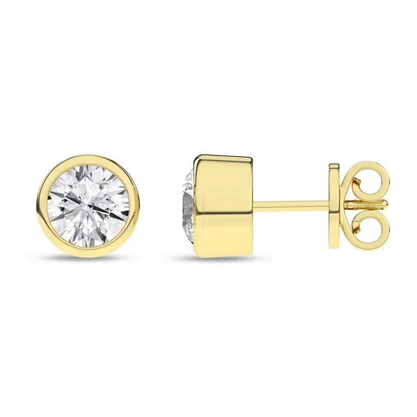 Bezel-Set Solitaire Stud Earrings (Round)/1Ct, 2Ctw